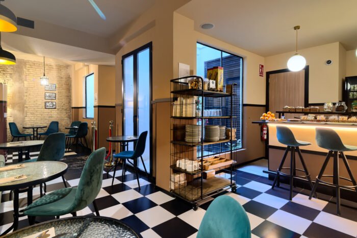 El desayuno en horario de 8am – 10.00 am, excepto sábado y domingo que es 8am a 10.30am esta incluido en su reserva. Esta compuesto por: café, zumo de naranja natural, leche, chocolate, té, infusiones, pan del día, pan de molde, bollería, mermeladas, jamón serrano, queso manchego, embutidos, etc